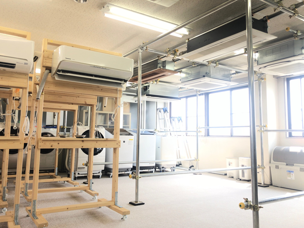 開業のために必要な総合的な知識を実践を交えて学ぶ開業講座に加えて、エアコンや洗濯機清掃の実際のシチュエーションを想定した練習環境をご用意しております。